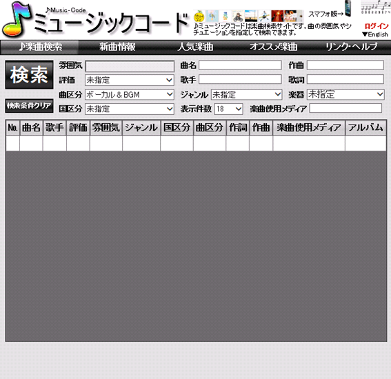 まずは、先ほど同様以下のようにお好きな条件を入力して調べたいジャンルの曲を表示します。
